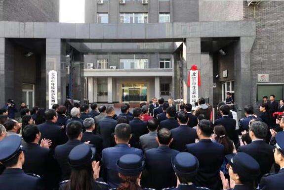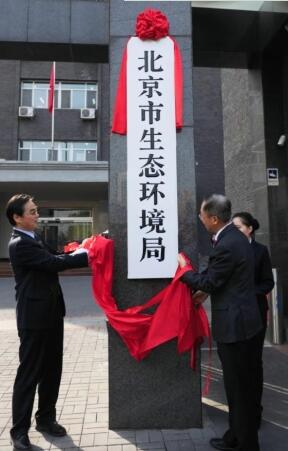 北京市生态环境局党组书记陈添、局领导、机关各处室和直属单位主要负责同志、监测执法人员代表等参加了揭牌仪式。