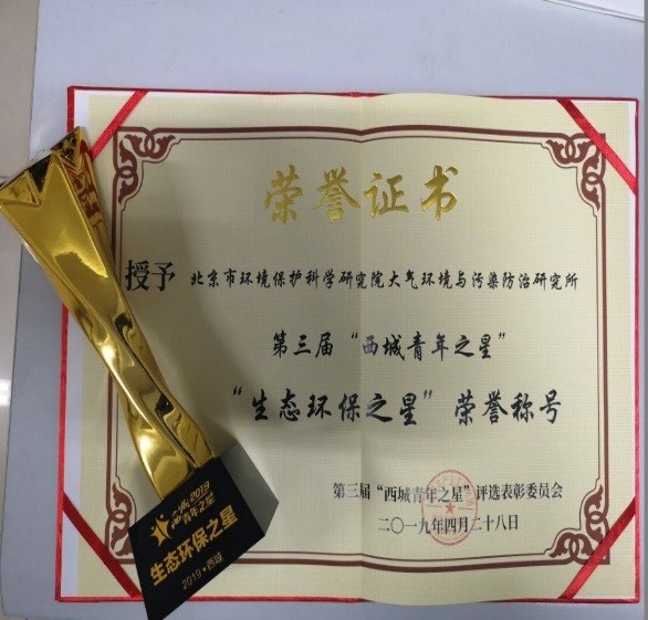 为庆祝新中国成立70周年、纪念五四运动100周年,西城区团委为贯彻落实团中央“青春心向党 ·建功新时代”的主题宣传教育实践活动要求,大力推树宣传青年身边典型,团区委联合区委宣传部、区委社会工委、区文明办等单位在五四青年节到来前夕开展了以“传承五四百年魂·青春建功新时代”为主题的第三届“西城青年之星”评选活动。北京市环境保护科学研究院大气环境与污染防治研究所,作为参选单位。经过专家评选、网络投票、复选等环节,获得了第三届“西城青年之星”—“生态环保之星”荣誉称号。为我院争得了荣誉,提高了社会各界对生态环境保护工作的认知认同。大气所全体员工在今后的工作中,将坚持弘扬五四精神,不忘初心,砥砺前行,为我市大气环境改善,为打好“蓝天保卫战”贡献一份力量。