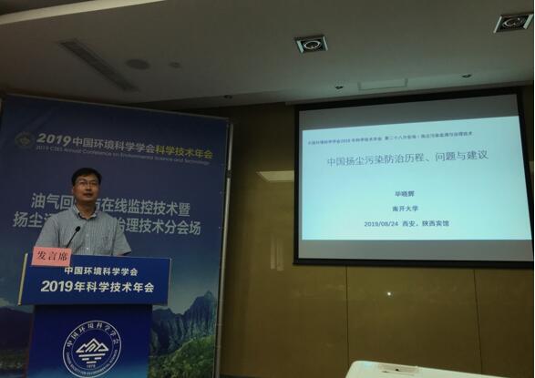 南开大学环境科学与工程学院副教授毕晓辉作了题为《中国扬尘污染防治历程、现状与问题》的报告。他首先介绍了我国扬尘防治研究的历程,接着讲了我国扬尘管控的相关政策、法规、条例等,以及扬尘污染管控现状,他指出扬尘污染防治“管人是核心、落实是关键、基础设施是基础、机制制度是保障”的重要理念。