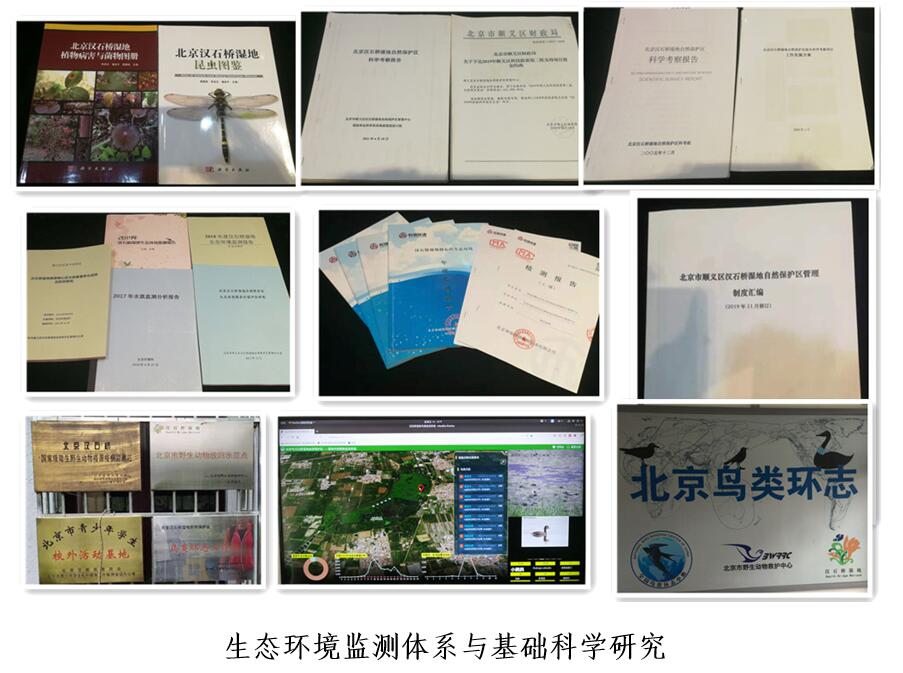 湿地生态系统的生态环境监测体系较为完善,开展了水位监测、鸟类监测、植物监测、水质监测、土壤监测以及气象监测等工作,积累了大量的监测数据,为保护区日常管理和湿地生态保护与修复提供了良好的基础支撑。其中,鸟类基础性监测工作突出,建立了湿地鸟类智能监测系统,实现对湿地鸟类的动态监测与时空变化分析。建立了鸟类研究体系,是北京市仅有的两家开展鸟类环志工作的管理机构之一。保护区下设生态环境科,拥有专业人才队伍,开展了生态系统服务价值评价、水体富营养化成因及防控等专题研究,自主科研与基础性科研能力较为突出。