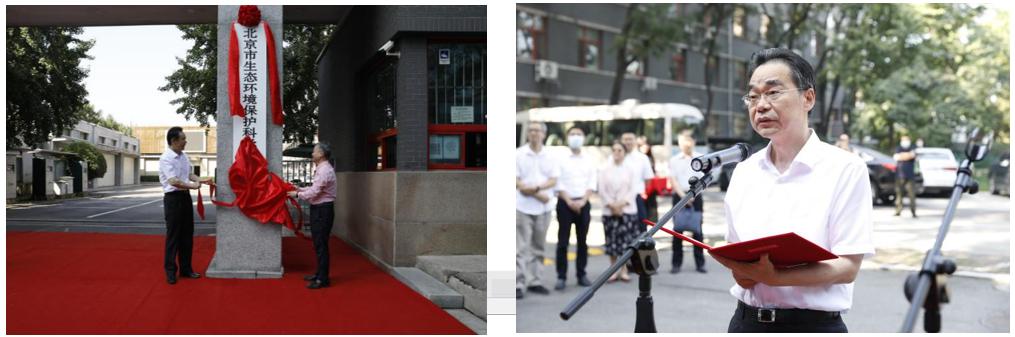 参加揭牌仪式的还有局党组成员、副局长张乙铭同志,局总工程师陈维敏同志,局办公室副主任冯晓光同志,研究室副主任黄斌同志,科技与国际合作处(应对气候变化处)处长明登历同志,财务处(审计处)处长郑定伟同志,人事处处长伊博同志,以及环科院领导班子成员、部门负责人及科研人员代表。