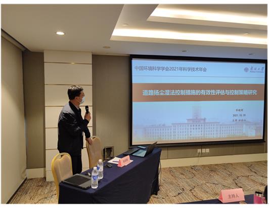 南开大学环境科学与工程学院毕晓辉教授作了题为《道路扬尘湿法控制措施的有效性评估与控制策略研究》的报告。报告通过洒水道路现场监测实验和CALPUFF模型模拟等两种方式评估了道路扬尘湿法控制措施的有效性,并指出现行洒水制度存在一定盲目性,洒水可以有效降低道路扬尘排放的颗粒物浓度,但是洒水存在有效区间。