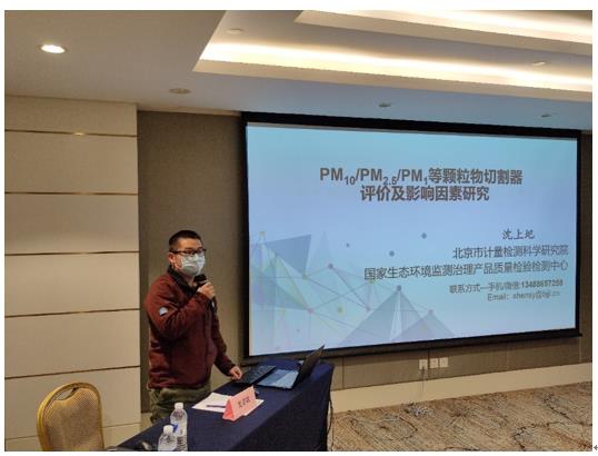 北京市计量检测科学研究院沈上圯高级工程师作了题为《PM10/PM2.5/PM1等颗粒物切割器评价及影响因素研究》的报告,他介绍了国内外常见的颗粒物切割器,采用颗粒物采样效率测试对颗粒物切割器进行测试评估,并介绍了影响PM10等颗粒物切割器切割效率的影响因素及计量检测方案。